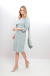 Beautiful Sage fitted dress with cape and embellishment detailing.