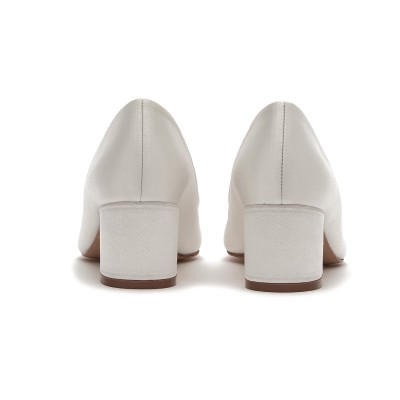 Crafted from beautiful ivory satin, they have round toes, a sleek silhouette and boast wear-all-day low block heels. Chic and comfortable, they're a classic bridal shoe that will complement any wedding dress.
